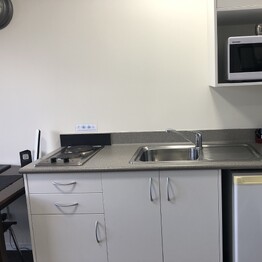 - Kitchenette with double hob, microwave and fridge
